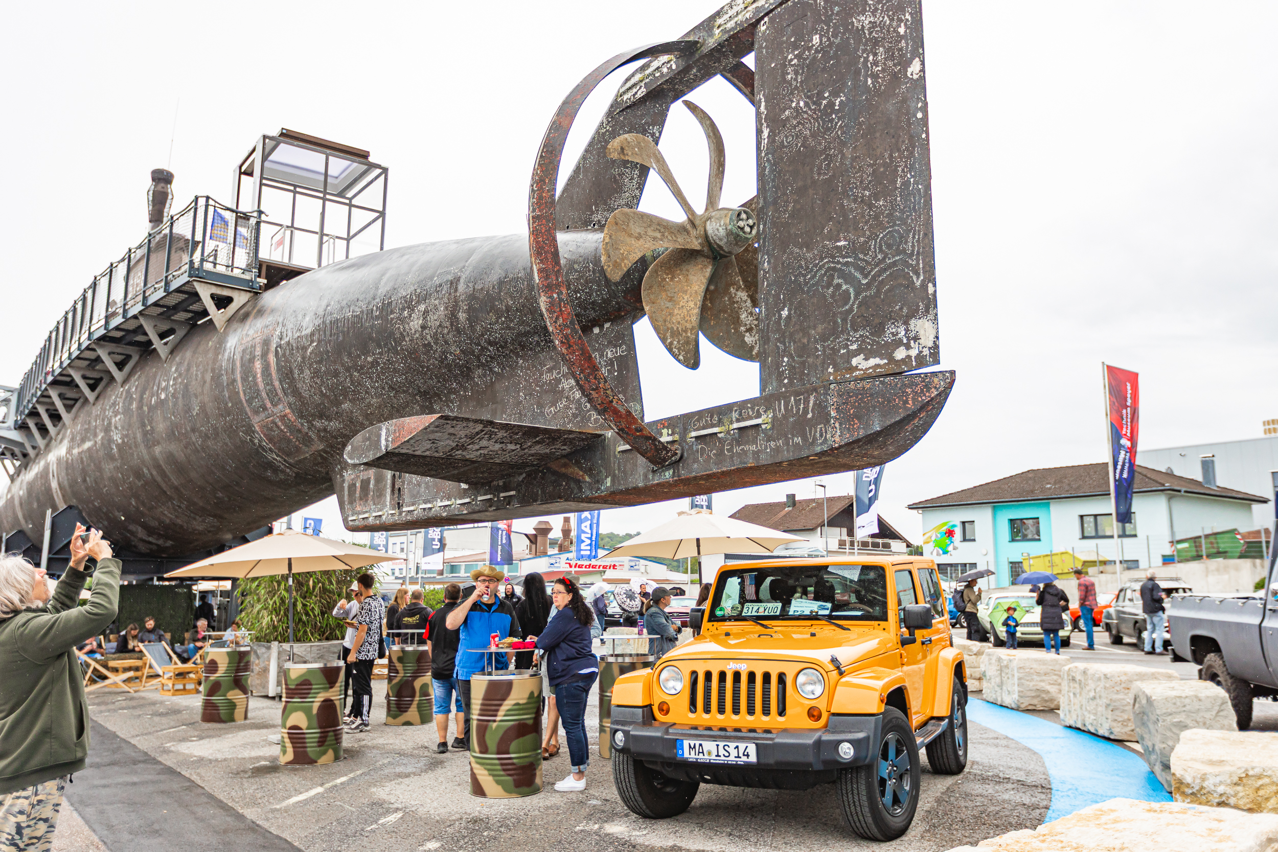 Zum ersten Mal gab es beim US-Car Treffen einen eigenen Bereich für US-Military-Fahrzeuge – und der lag spektakulär: direkt neben dem U-Boot U17, unserem neuesten Exponat auf dem Museumsgelände.